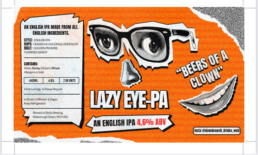 Lazy Eye-PA is a fun, easy drinking English IPA made from all English hops. 4.8% ABV.